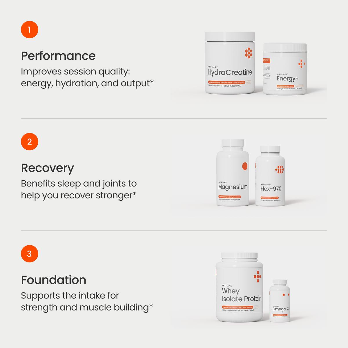 Protein & Omega-3 support the baseline intake that makes strength and muscle building sustainable over time.